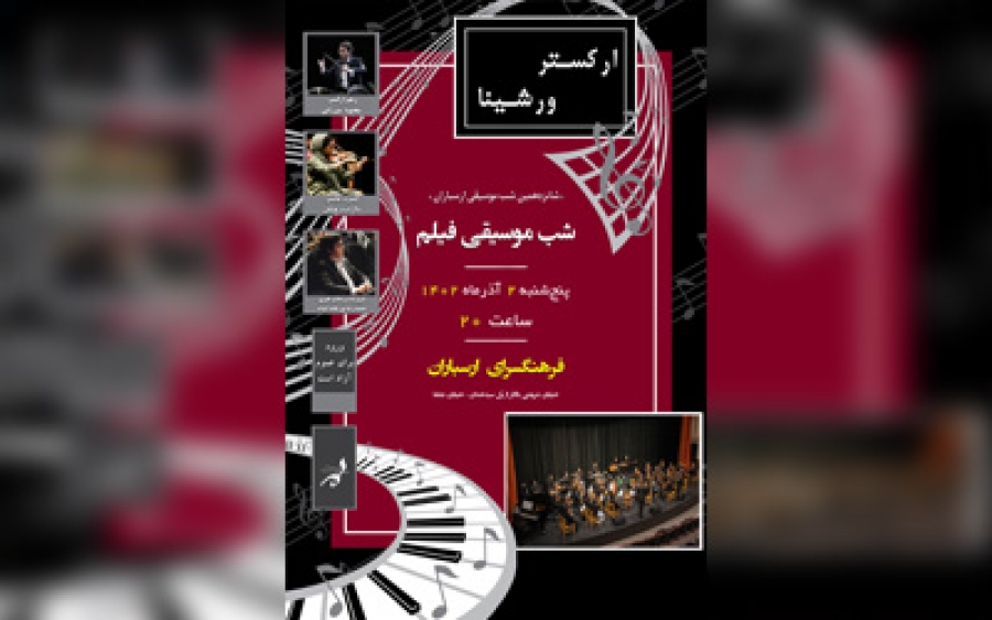 در این کنسرت که به اجرای موسیقی فیلمهای شناخته شده تاریخ سینما اختصاص دارد، ارکستر ۴۵ نفره «ورشینا» به سرپرستی حمیدرضا پورعابد ابیانه، قسمتهایی از فیلمهای کاروانها (مایک بت)، بازی بزرگان (رامین جوادی)، فتح بهشت (ونجلیس)، روح (موریس ژار)، چاراد (هنری مانچینی)، پدر خوانده (نینو روتا)، مرثیهای برای یک رویا (کلینت منسل)، اینترستلار (هانس زیمر) و والس گرامافون (یوجن دوگا) را خواهد نواخت.