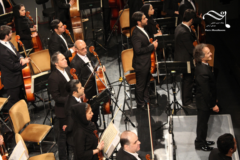 پس از ورود نوازنده ها و سپس ورود شهرداد روحانی به روی صحنه دلیل محکم و پرهیجانی بود که تا هم علاقه مندان و طرفداران موسیقی ارکسترال به احترام وی بایستند و دقایقی شهردادروحانی وارکستر سمفونیک را در بدو ورود با تشویق آماده شروع به اجرا کنند.