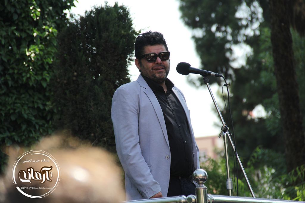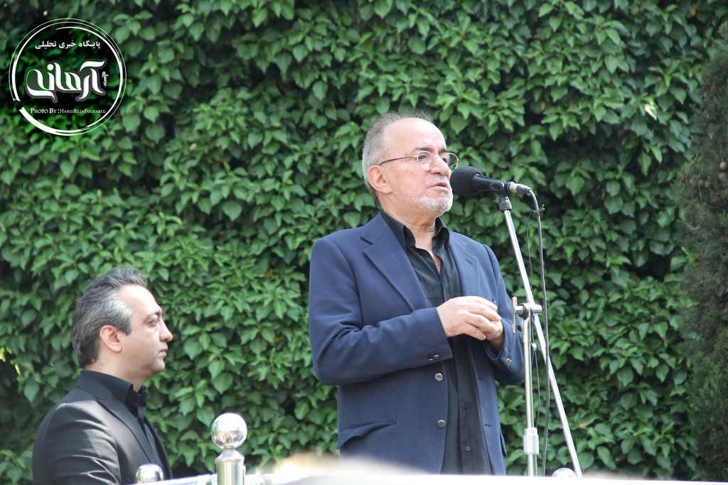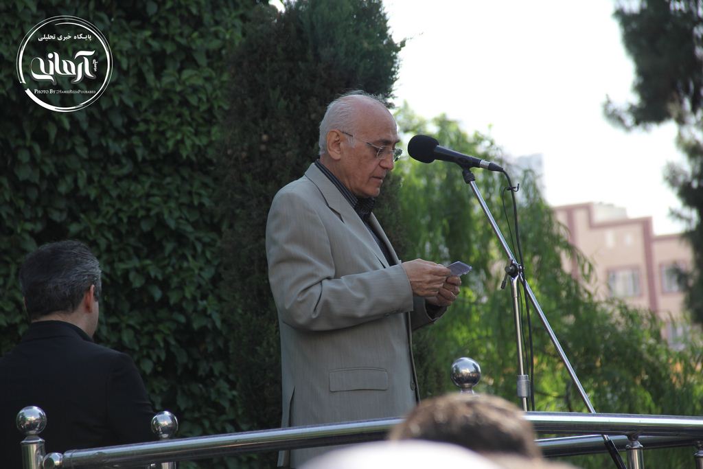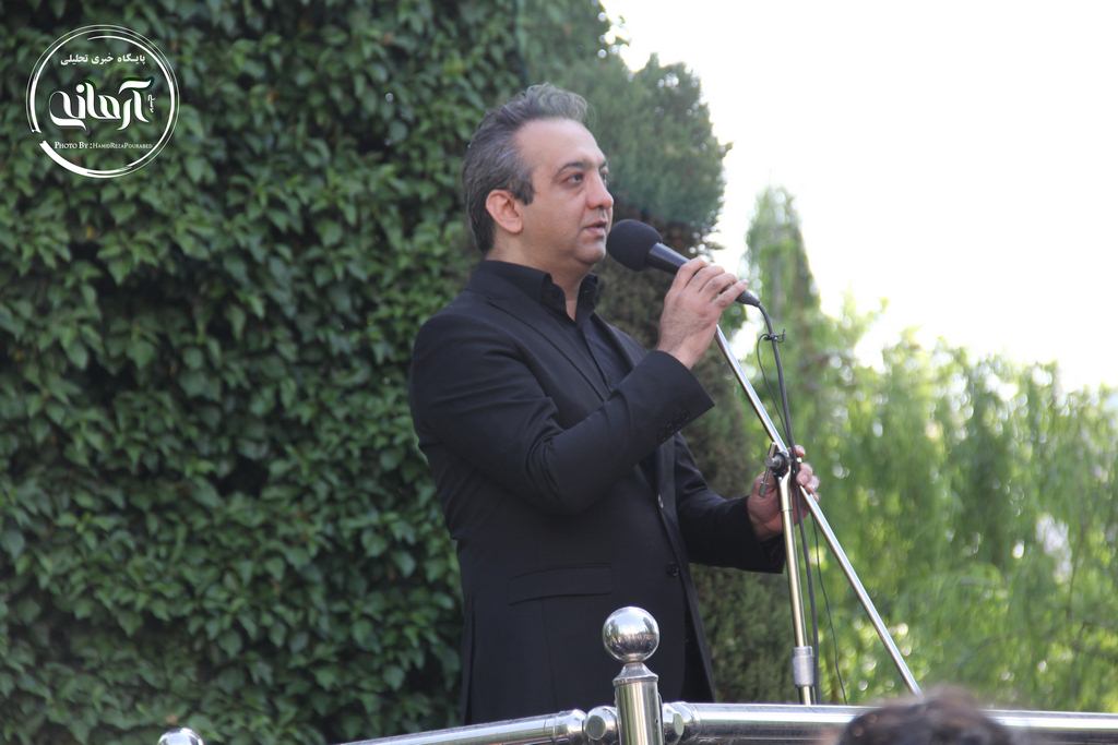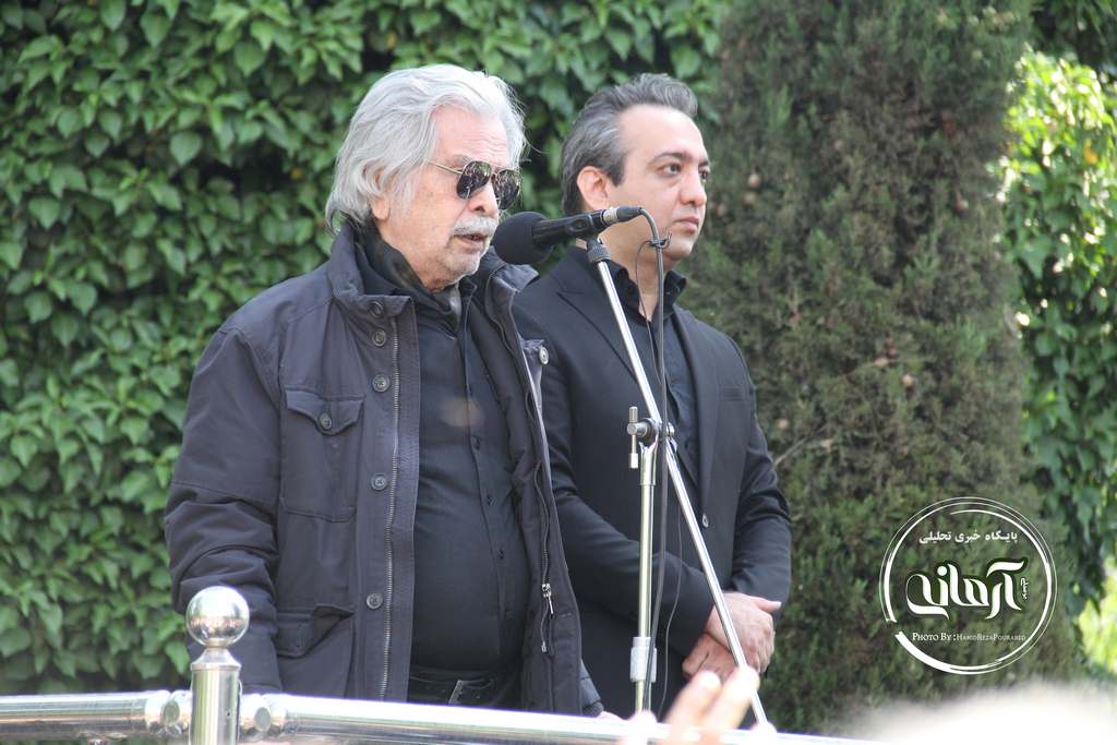 وی بعد از صحبت هایش قطعه موسیقایی را خواند و از مخاطبان خواست تا با تکرار این قطعه او را در بدرقه ناصر چشم آذر همراهی کنند.