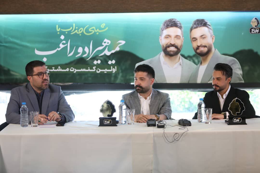 در ابتدای این نشست حامد حسین زادگان مدیرروابط عمومی موسسه فرهنگی هنری آوازی نو گفت: مخاطب و کیفیت رویداد هنری همیشه برای ما در اولویت بوده است. حضور حمید هیراد و مصطفی راغب در کنار یکدیگر میتواند فضای جذابی را برای برگزاری یک کنسرت موسیقی فراهم کند. ما این اجرا را رویدادی هنری فرهنگی میبینیم و میخواهیم در ماههای آینده هم این اجرا را تمدید کنیم. همچنین برگزاری تور اروپا برای این کنسرتِ مشترک هم انجام شده و این دو خواننده در کنار هم در برخی کشورهای اروپایی، کانادا و استرالیا روی صحنه خواهند رفت.
