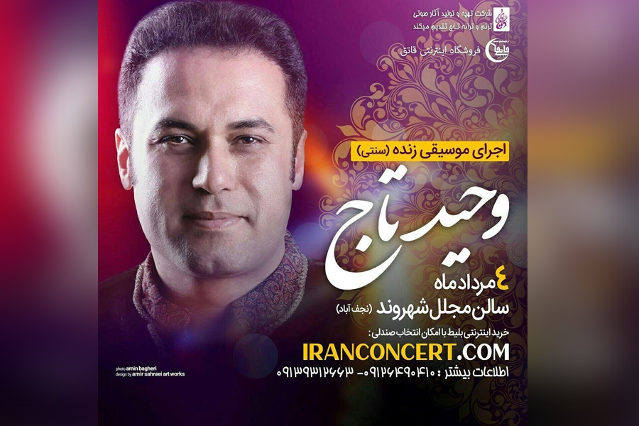 وحید تاج در نخستین همکاری رسمی‌اش با ارکستر «همنوازان تاج»، چهارم مردادماه سال جاری در استان اصفهان روی صحنه می‌رود...