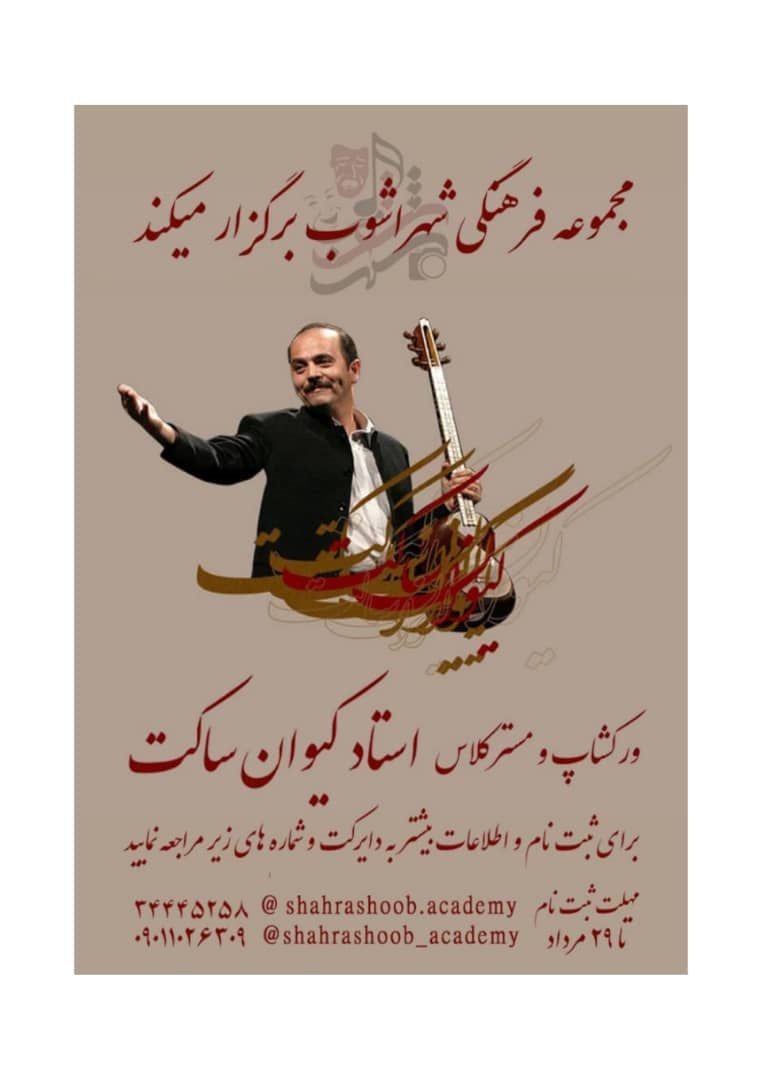 موسیقی آرمانی به گزارش روابط عمومی پروژه، کیوان ساکت آهنگساز و نوازنده تار و سه تار گفت: قرار است مستر کلاسی در شهر اصفهان برگزار کنیم که این مستر کلاس چهارشنبه دوم شهریور ماه سال جاری از سوی مجموعه فرهنگی «شهر آشوب» برگزار می شود.